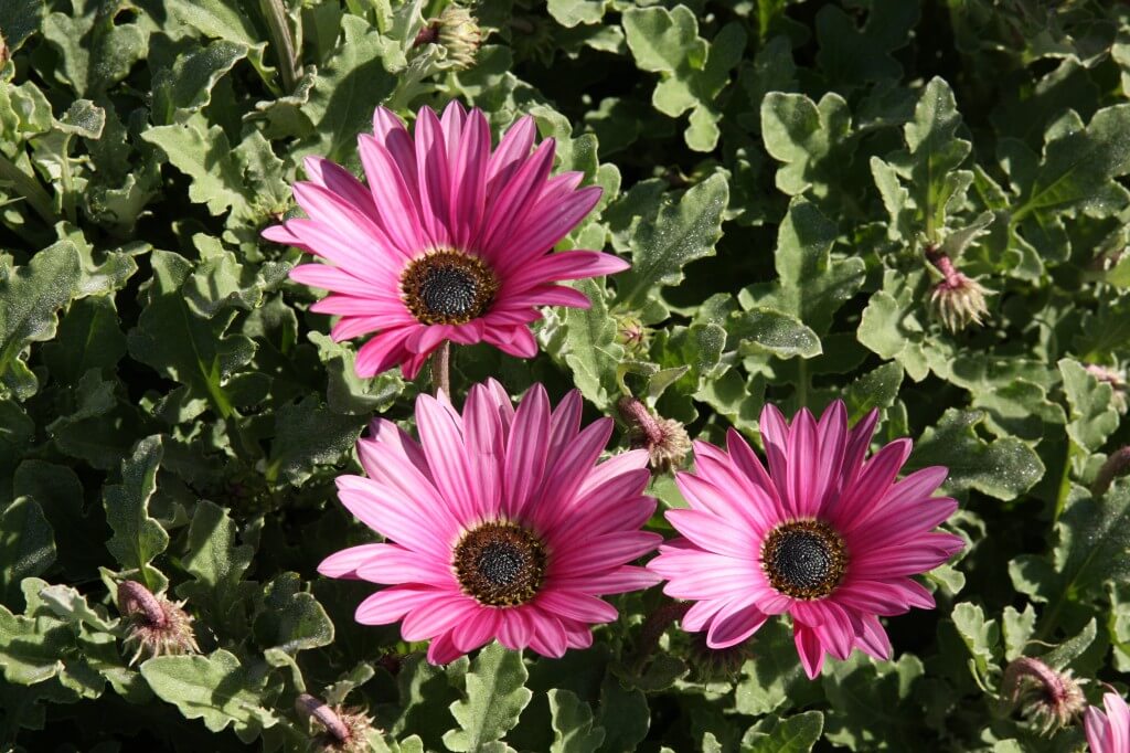 Arctotis ‘Silver Pink’ is a very hardy ground cover from South Africa. Pink daisies appear on the grey/silver leaves year round with extended flowering in spring. It is a fast grower, very easy to look after and gives color year round. Arctotis require regular watering in the early stages of growth but once established they can be left in dry and hot conditions. Trim the spent flowers for extended flowering. An ideal ground cover for banks, exposed areas and garden beds.