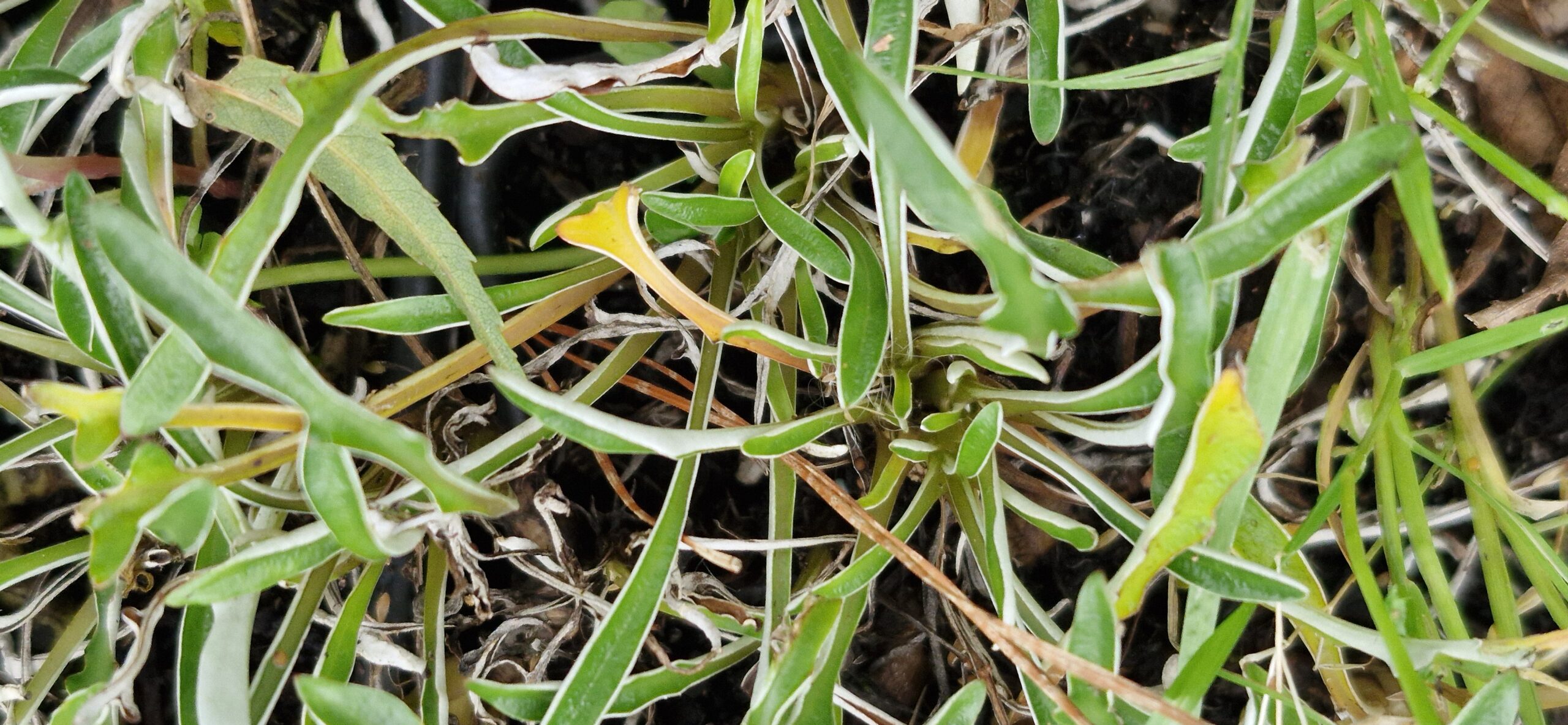 Dymondia margaretae ‘Silver Carpet’ is a low-growing, mat-forming ground cover prized for its silvery-green, narrow leaves with rolled edges and a felted underside. In summer, it produces small, yellow daisy-like flowers that add a cheerful touch to its dense foliage.