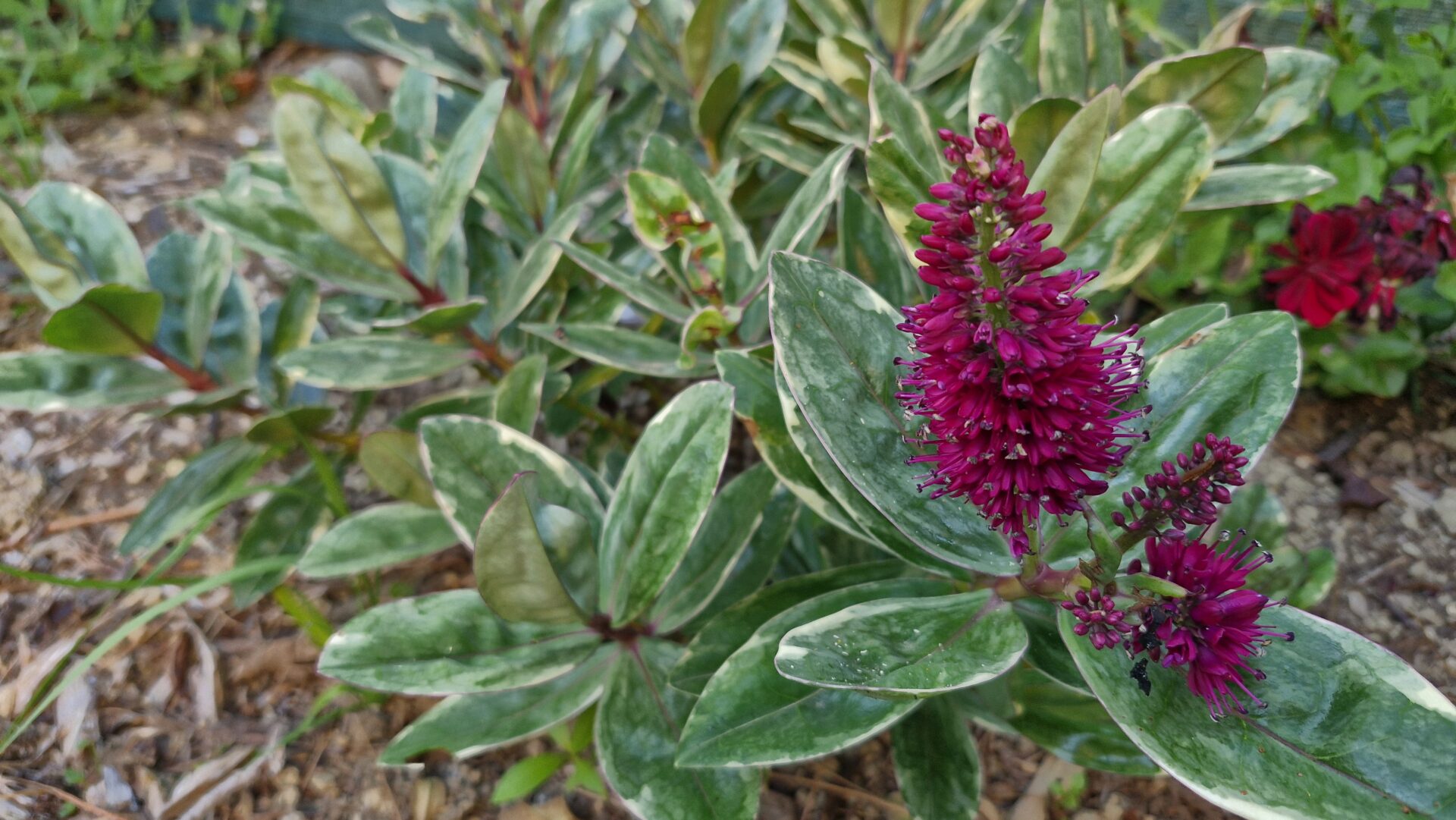 Hebe ‘Tricolor’ is a compact, evergreen shrub prized for its attractive variegated foliage, with green leaves edged in creamy white and flushed pink in cooler weather. Growing to approximately 50–70 cm in height and spread, it forms a neat, bushy habit ideal for borders, containers, coastal gardens, and low hedging. Small lilac to pale purple flower spikes appear in summer, adding seasonal interest and attracting pollinators. This hardy hebe thrives in full sun to partial shade, prefers well-drained soil, and is low-maintenance, offering year-round colour and structure in the garden.