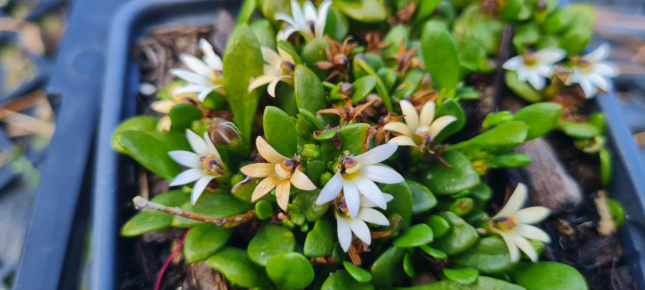 Selliera ‘Farwell Spit’ is a small, hardy, NZ native creeping succulent. Ideal for an edge of a garden bed or can even be used as a grass replacement as you can just walk on it. Ideal for coastal windy areas.